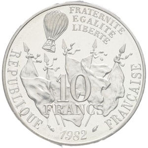 FRANCE - FRANCE Ve République (1958 à nos jours). Piéfort de 10 francs Gambetta en argent 1982, Pessac.…