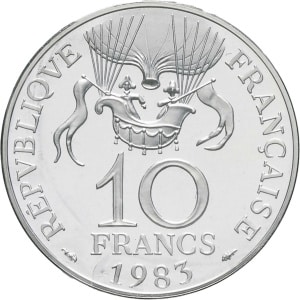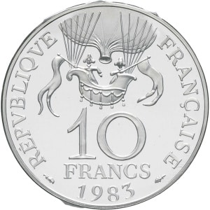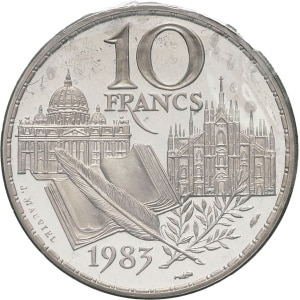 FRANCE - FRANCE Ve République (1958 à nos jours). Piéfort de 10 francs Stendhal en argent 1983, Pessac.…