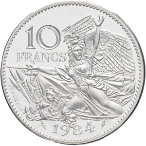 FRANCE - FRANCE Ve République (1958 à nos jours). Piéfort de 10 francs François Rude en argent 1984, Pessac.…