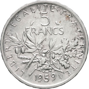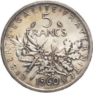 FRANCE - FRANCE Ve République (1958 à nos jours). 5 francs Semeuse 1960, Paris.…