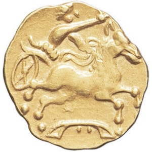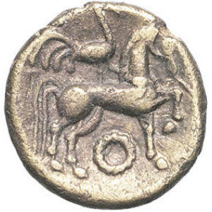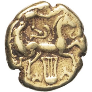 GAULE - CELTIC Durocasses ou Carnutes. Quart de statère à l’oreille centrée d’un point ND (IIe-Ier s. av. J.-C…