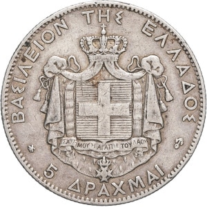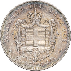 GRÈCE - GREECE Georges Ier (1863-1913). 5 drachmes 1875, A, Paris.