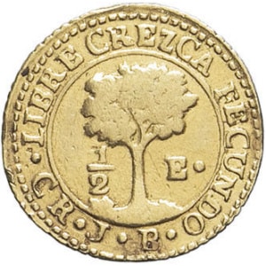 GUATEMALA - GUATEMALA République fédérale d’Amérique centrale (1823-1841). 1/2 escudo 1848 CR JB, San José.…