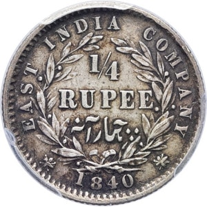 INDES BRITANNIQUES - BRITISH INDIES Victoria (1837-1901). Quart de roupie 1840, Bombay ou Calcutta.…