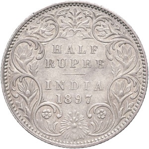 INDES BRITANNIQUES - BRITISH INDIES Victoria (1837-1901). Demi roupie 1897, B, Bombay.…