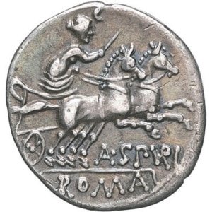 RÉPUBLIQUE ROMAINE - ROMAN REPUBLIC A. Spurius. Denier ND (139 av. J.-C.), Rome.…