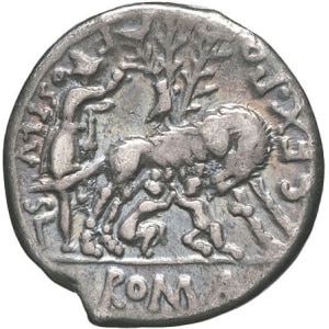 RÉPUBLIQUE ROMAINE - ROMAN REPUBLIC M. Sergius Silus. Denier ND (116-115 av. J.-.C), Rome.…
