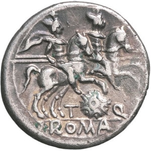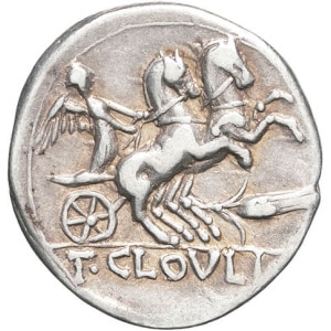 RÉPUBLIQUE ROMAINE - ROMAN REPUBLIC T. Clovli (ou T. Cloelius). Denier ND (128 av. J.-C.), Rome.…