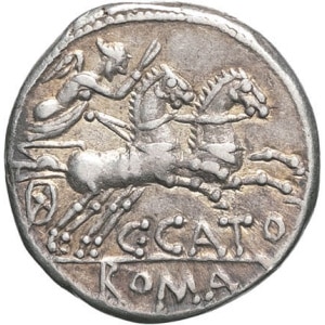 RÉPUBLIQUE ROMAINE - ROMAN REPUBLIC C. Porcius Cato. Denier ND (123 av. J.-C.), Rome.…