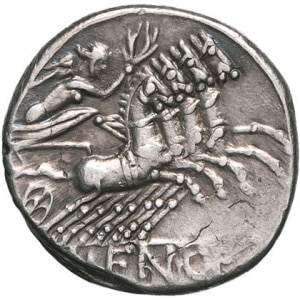 RÉPUBLIQUE ROMAINE - ROMAN REPUBLIC Q. Curtius, M. Silanus et Cn. Domitius Ahenobarbus. Denier ND (116-115 av.…