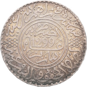 MAROC - MOROCCO Abdül Aziz I (1894-1908). 5 dirhams AH 1318 (1901), Paris.