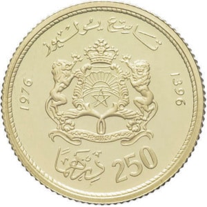 MAROC - MOROCCO Hassan II (1961-1999). 250 dirhams Or, anniversaire du roi, Flan bruni (PROOF) 1976 - AH 1396,…