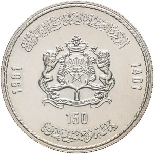 MAROC - MOROCCO Hassan II (1961-1999). 150 dirhams, 20e anniversaire du couronnement 1981 - AH 1401.…