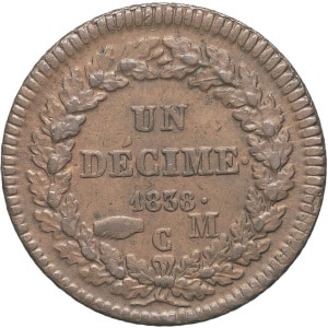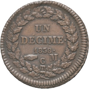 MONACO - MONACO Honoré V (1819-1841). Un décime, grosse tête 1838, Monaco.