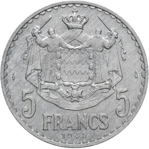MONACO - MONACO Louis II (1922-1949). Essai de 5 francs en aluminium 1945, Paris.…