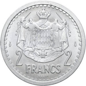 MONACO - MONACO Louis II (1922-1949). Essai de 2 francs en aluminium ND (1943).