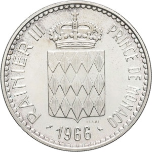 MONACO - MONACO Rainier III (1949-2005). Essai de 10 francs, Charles III, centenaire de Monte-Carlo 1966, Pari…