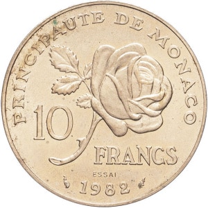 MONACO - MONACO Rainier III (1949-2005). Essai de 10 francs Princesse Grace Kelly 1982, Paris.…