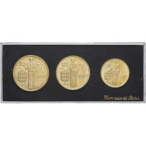 MONACO - MONACO Rainier III (1949-2005). Série de trois essais de 50, 20 et 10 centimes 1962, Paris.…