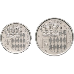 MONACO - MONACO Rainier III (1949-2005). Lot de 2 essais : 1 franc 1960 et 1/2 franc 1965, Paris.…
