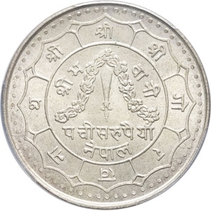 NÉPAL - NEPAL Birendra Bir Bikram (VS2028-2058 / 1971-2001). 25 roupies, couronnement de Birendra VS 2031 (197…