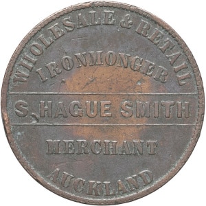 NOUVELLE-ZÉLANDE - NEW ZEALAND Victoria (1837-1901). Jeton au module d’un penny, S. Hague Smith à Auckland ND.…