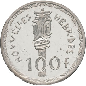 NOUVELLES-HÉBRIDES - NEW HEBRIDES Ve République (1958 à nos jours). Piéfort de 100 francs 1974, Paris.…