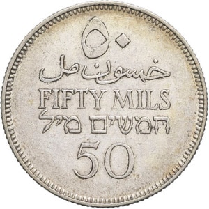 PALESTINE - PALESTINE Administration britannique (1922-1948). Lot de 2 monnaies de 50 mils 1927 et 1937, Londr…