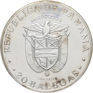 PANAMA - PANAMA République (1903 - à nos jours). 20 balboas, Simon Bolivar, frappe sur Flan bruni (PROOF) 1974…