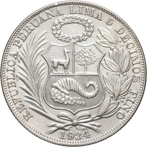 PÉROU - PERU République du Pérou (depuis 1821). Un sol 1934.
