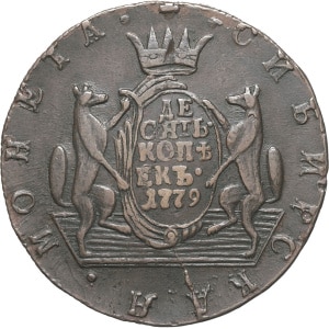 RUSSIE - RUSSIA Catherine II (1762-1796). 10 kopecks pour la Sibérie 1779, KM, Kolyvan.…