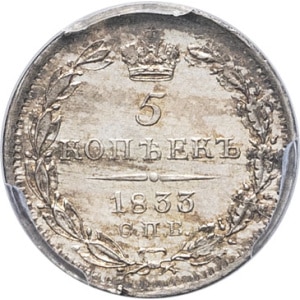 RUSSIE - RUSSIA Nicolas Ier (1825-1855). 5 kopecks 1833 ΗГ, СПБ, Saint-Pétersbourg.…