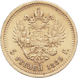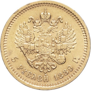 RUSSIE - RUSSIA Alexandre III (1881-1894). 5 roubles barbe courte, sans différent 1889 (АГ), Saint-Pétersbourg…