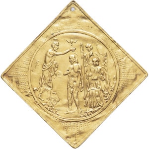 RUSSIE - RUSSIA Médaille en or, naissance et baptême du Christ ND (XIXe s.).