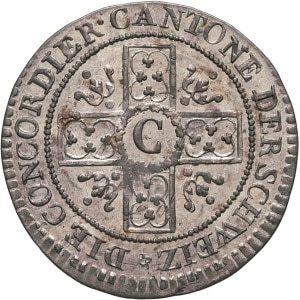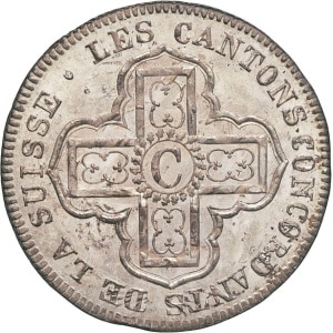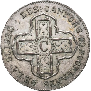 SUISSE - SWITZERLAND Berne (canton de). Écu aux rameaux d’Olivier, contremarqué 40 batzen pour Berne [1785] pu…