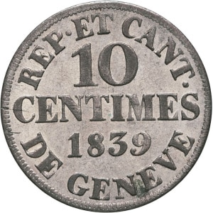 SUISSE - SWITZERLAND Genève (canton de). 10 centimes 1839, Genève.