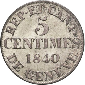 SUISSE - SWITZERLAND Genève (canton de). 5 centimes 1840, Genève.