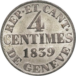 SUISSE - SWITZERLAND Genève (canton de). 4 centimes 1839, Genève.