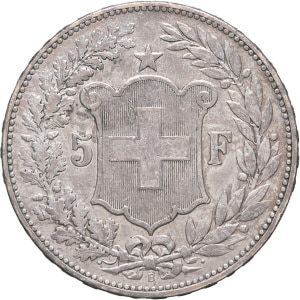 SUISSE - SWITZERLAND Confédération Helvétique (1848 à nos jours). 5 francs 1925, B, Berne.…