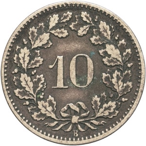 SUISSE - SWITZERLAND Confédération Helvétique (1848 à nos jours). 10 centimes (rappen) 1871, B, Berne.…