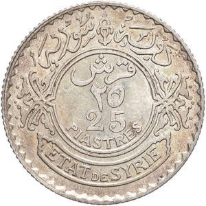 SYRIE - SYRIA Mandat français (1920-1946). 25 piastres 1929, Paris.