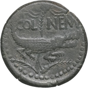 EMPIRE ROMAIN - ROMAN Auguste (27 av. J.-C. - 14 ap. J.-C.). Demi-dupondius ou As de Nîmes ND (16-10 av. J.-C.…