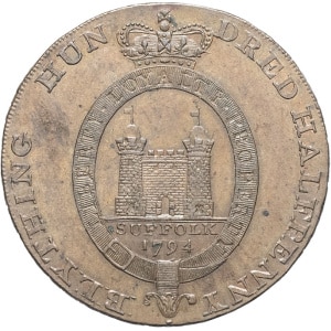 GRANDE-BRETAGNE - UNITED KINGDOM Georges III (1760-1820). Suffolk, jeton d’un demi-penny, Blything 1794.…