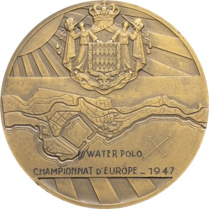 MONACO - MONACO Louis II (1922-1949). Médaille, championnat d’Europe de Waterpolo, par P. Turin 1947, Paris.…