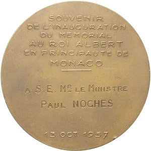 MONACO - MONACO Rainier III (1949-2005). Médaille, inauguration du mémorial au roi Albert Ier de Belgique, par…