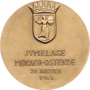 MONACO - MONACO Rainier III (1949-2005). Médaille, jumelage Monaco-Ostende, par Tschudin 1964, Paris.…