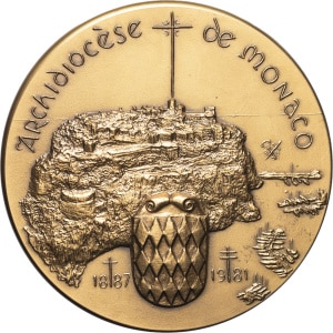 MONACO - MONACO Rainier III (1949-2005). Médaille, 20e anniversaire de l’archidiocèse de Monaco, par P. Lovy 2…