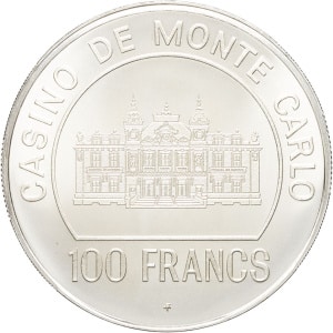 MONACO - MONACO Rainier III (1949-2005). Jeton de 100 francs du casino de Monte Carlo ND, FM, Franklin mint.…