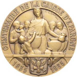FRANCE - FRANCE MÉDAILLES - Caisses d’épargne. Médaille, centenaire de la Caisse d’épargne de Villefranche-en-…