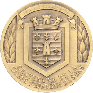 FRANCE - FRANCE MÉDAILLES - Caisses d’épargne. Médaille, centenaire de la Caisse d’épargne de Sens, par M. Del…